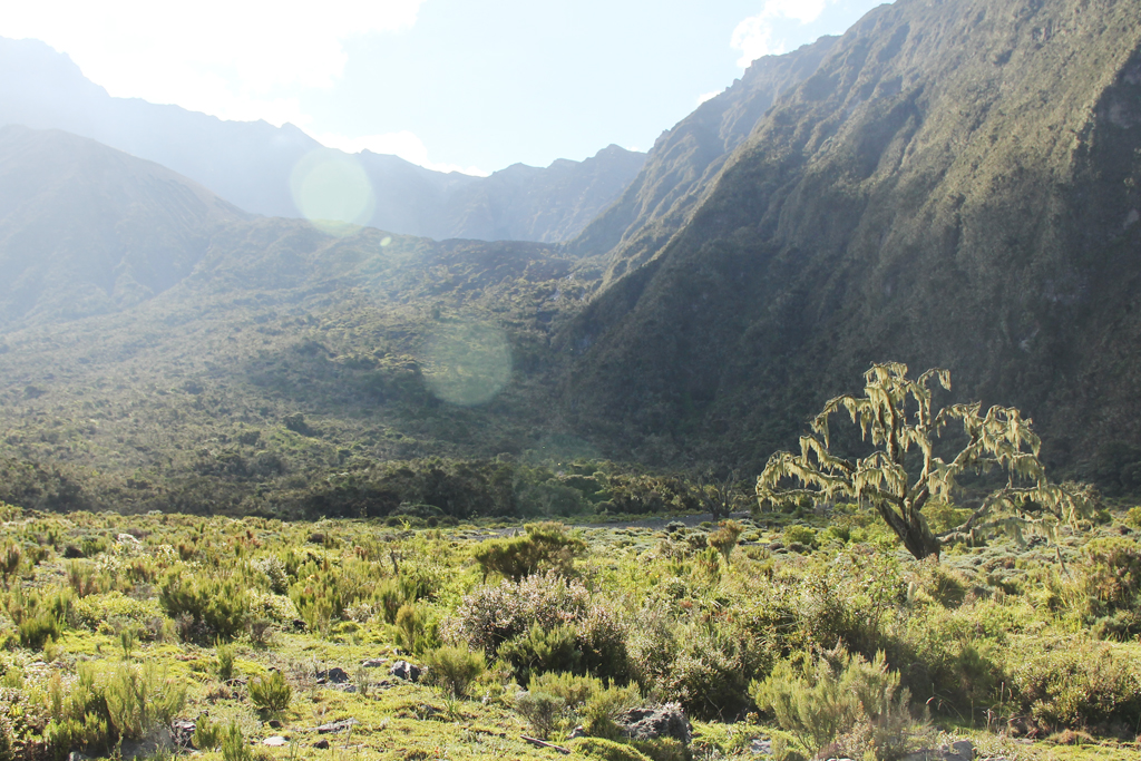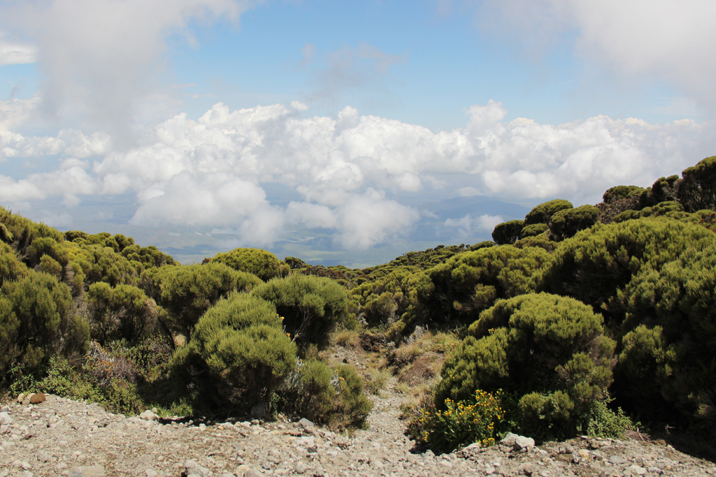 The hike is incredibly diverse as the mountain has a variety of vegetation zones. We were accomponied by a guide who said his name was "Good Luck" as well as an armed ranger, a cook an several porters.