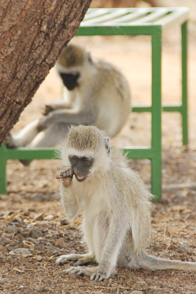 These vervt monkeys had lunch with us and seemed to enjoy having humans and their food around.