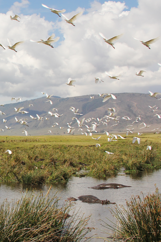 Lake Magadi is home to a lot of hippos and a lot of birds.