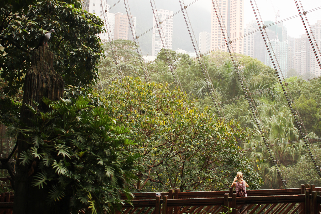 This is the Edward Youde Aviary which is Hong Kong's largest aviary. The canopy is home to several exotic birds, basically a little zoo for free.