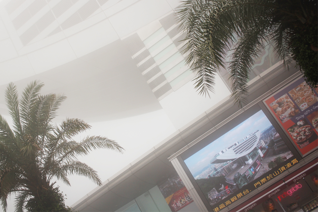 Riding a tram at a nearly 45 degree angle you get to this platform where you are supposed to have the best views of Hong Kong. On a sunny day.