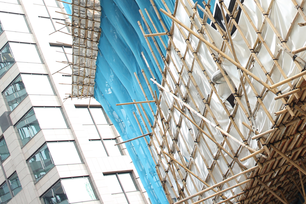 I noticed that instead of steal or wood, construction sides were solely made from bamboo.