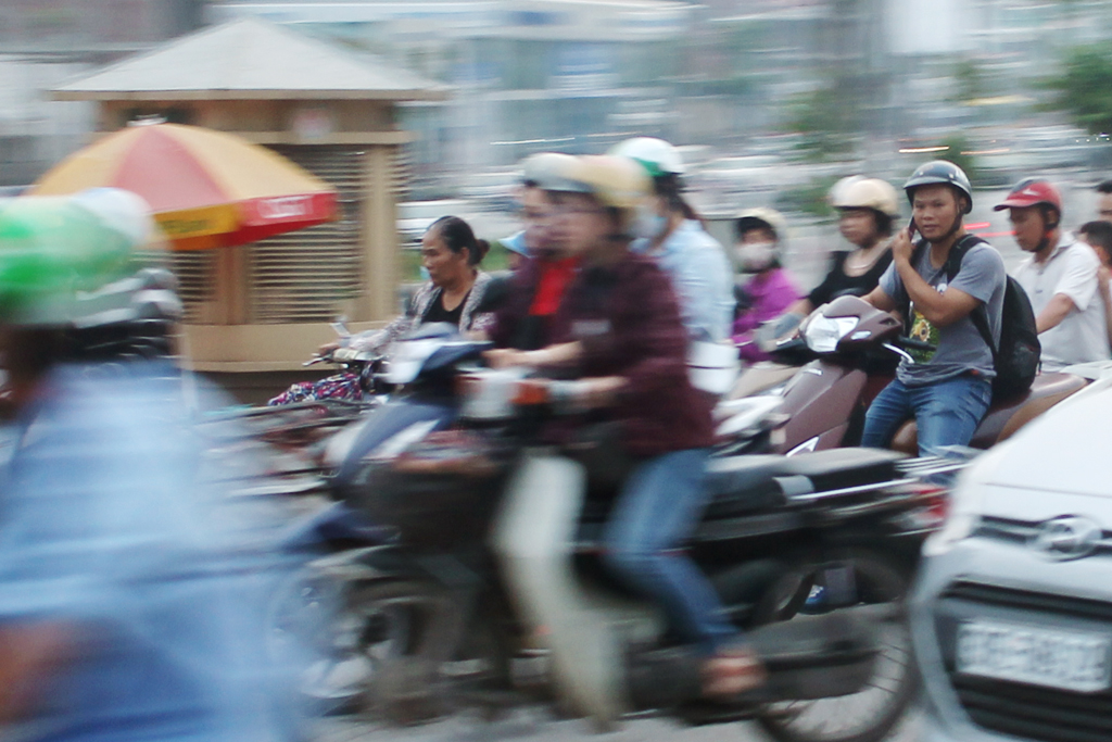 Hanoi streets are loud and FULL of motor cycles. This is not the start of a race, this is the typical waiting at a red light.
